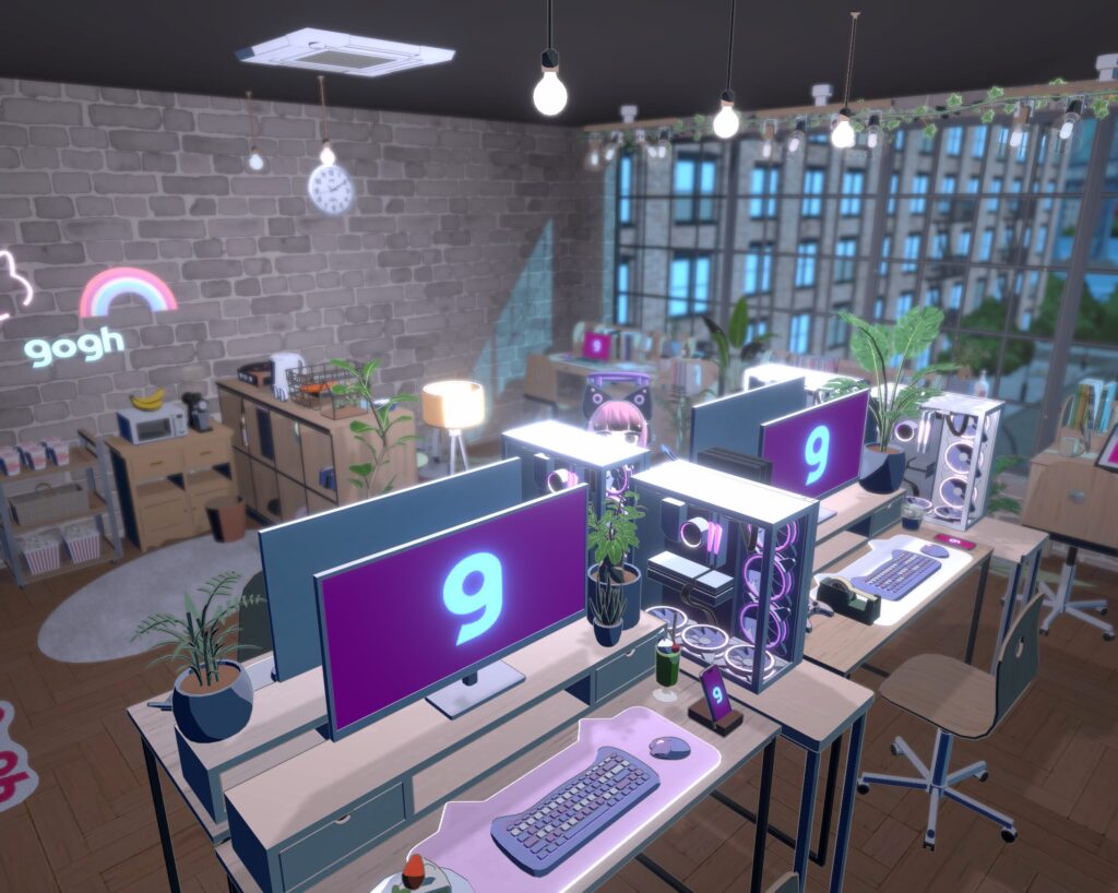 食べ物や飲み物、作業用のPCなど色々配置していきます。