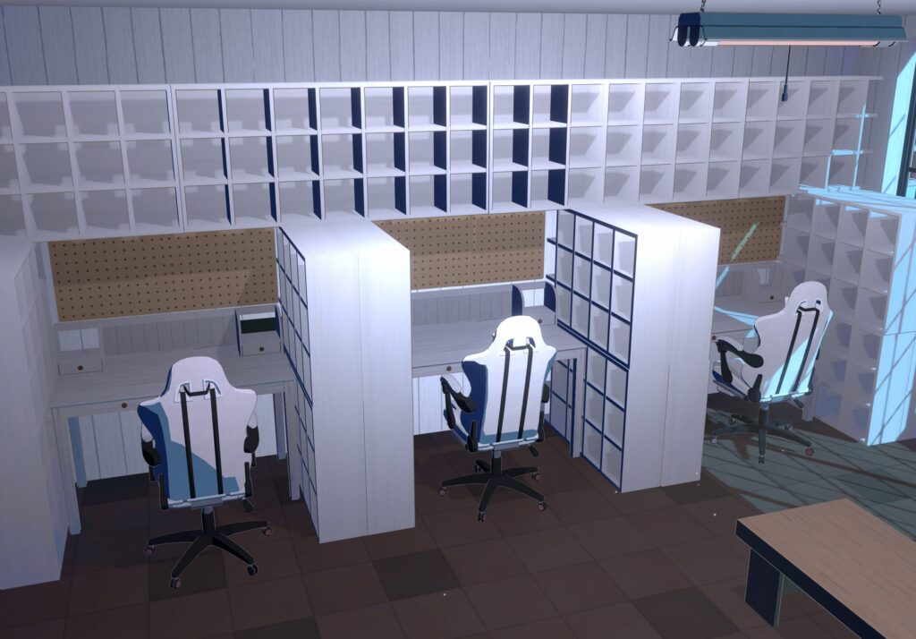 前回はオープンなイメージのオフィスを作成したんですが、今回は、それぞれの時間により没頭できる空間を部屋の中に作ることを目標に制作したいと思います。