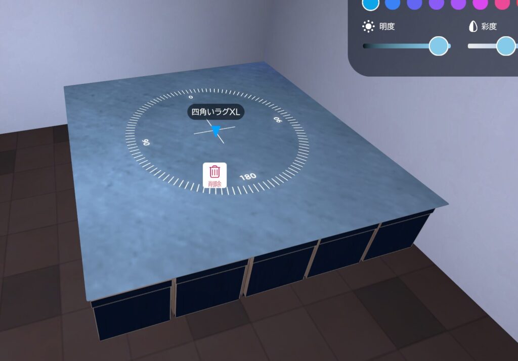 作りたい高台の高さに合う家具の上にラグを設置する方法で作成しています。ラグの中心点あたりに一つと、目隠ししたい方向に家具を並べて設置します。